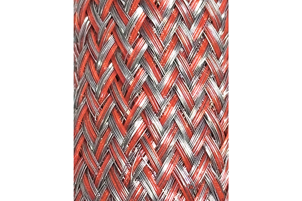 BEMI700 series is a braided EMI sleeving featuring a hybrid construction of tinned copper wire and orange PET monofilament. It provides effective electromagnetic shielding while offering good abrasion resistance.